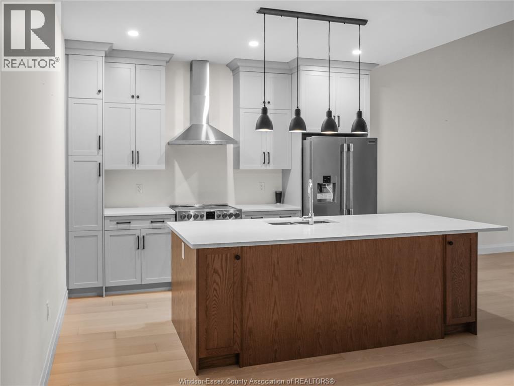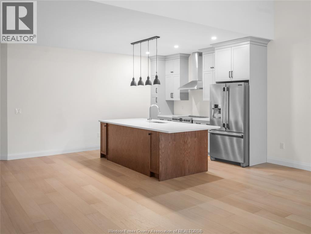 This large, brand new ranch style semi townhome is located in one of Amherstburg’s most desirable neighborhoods. Beautifully crafted and never been occupied, it offers refined, modern living throughout. Featuring 2 spacious bedrooms and 2 elegant bathrooms, including a primary suite with private ensuite, plus convenient main floor laundry. The open concept kitchen is designed for both style and function, showcasing a large island, premium cabinetry, and a sophisticated dry bar area ideal for entertaining. Soaring ceilings and expansive windows bathe the home in natural light. Complete with a 2 car garage and a 2 car driveway. Exceptionally built by reputable builder Everjonge, this home is perfectly suited for those seeking luxury, comfort, and low maintenance living. (id:4555)