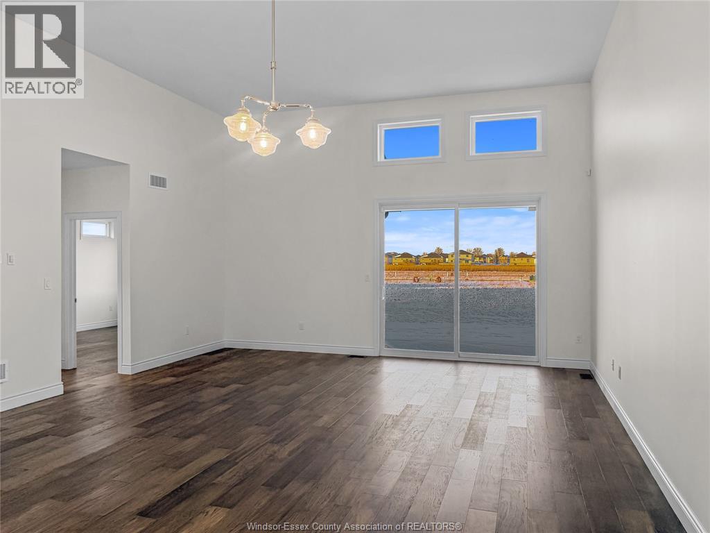 This large, brand new ranch style semi townhome is located in one of Amherstburg’s most desirable neighborhoods. Beautifully crafted and never been occupied, it offers refined, modern living throughout. Featuring 2 spacious bedrooms and 2 elegant bathrooms, including a primary suite with private ensuite, plus convenient main floor laundry. The open concept kitchen is designed for both style and function, showcasing a large island, premium cabinetry, and a sophisticated dry bar area ideal for entertaining. Soaring ceilings and expansive windows bathe the home in natural light. Complete with a 2 car garage and a 2 car driveway. Exceptionally built by reputable builder Everjonge, this home is perfectly suited for those seeking luxury, comfort, and low maintenance living. (id:4555)